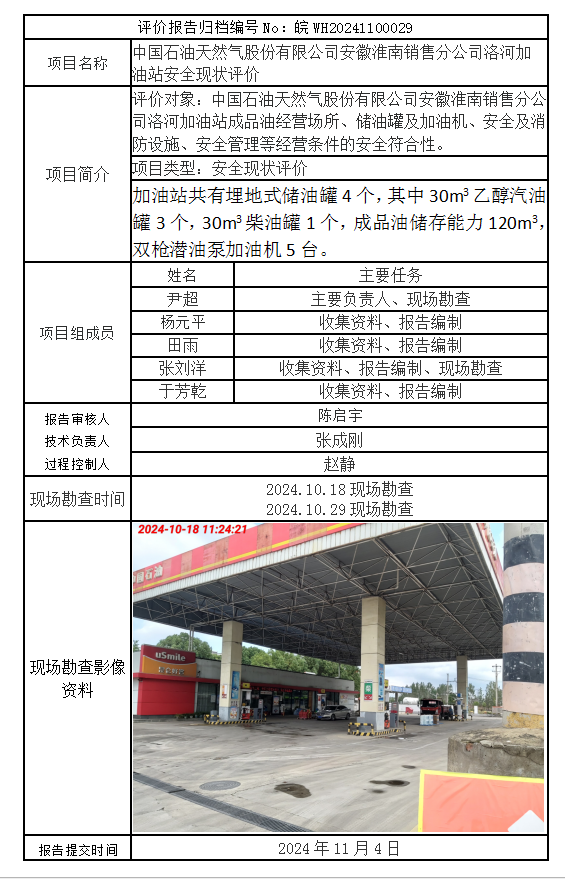 中國石油天然氣股份有限公司安徽淮南銷售分公司洛河加油站安全現狀評價