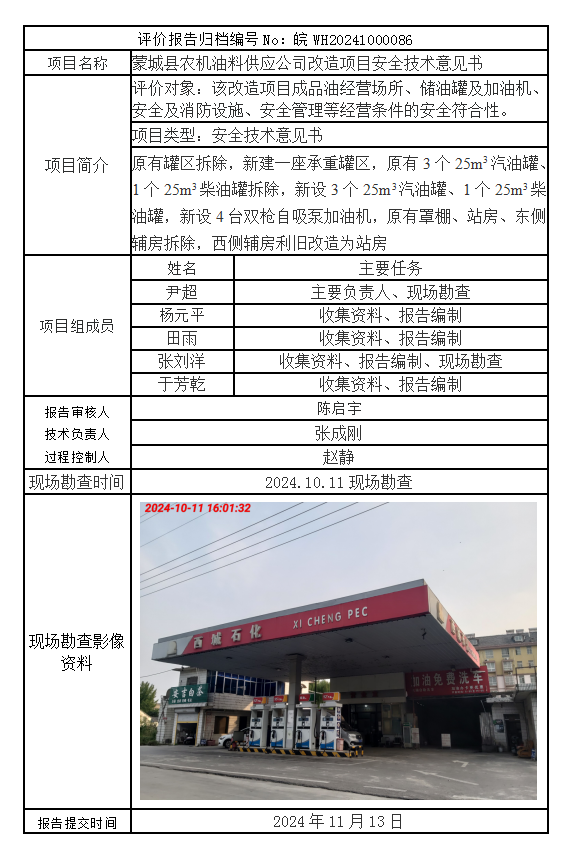蒙城縣農(nóng)機(jī)油料供應(yīng)公司改造項(xiàng)目安全技術(shù)意見書