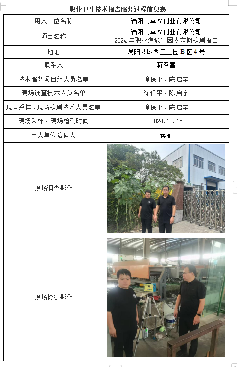 渦陽縣幸福門業有限公司2024年職業病危害因素定期檢測報告