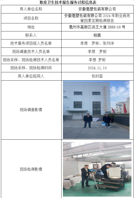 安徽亳塑包裝有限公司2024年職業(yè)病危害因素定期檢測(cè)報(bào)告
