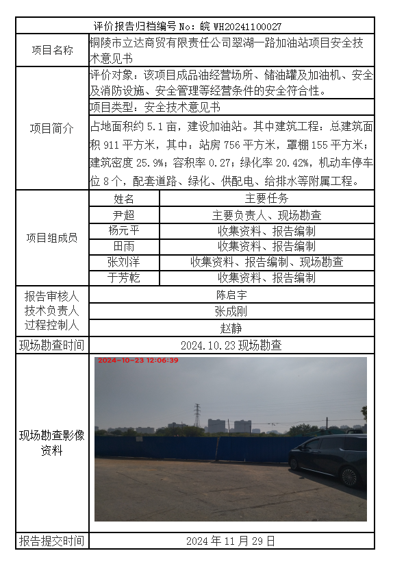 銅陵市立達商貿有限責任公司翠湖一路加油站項目安全技術意見書