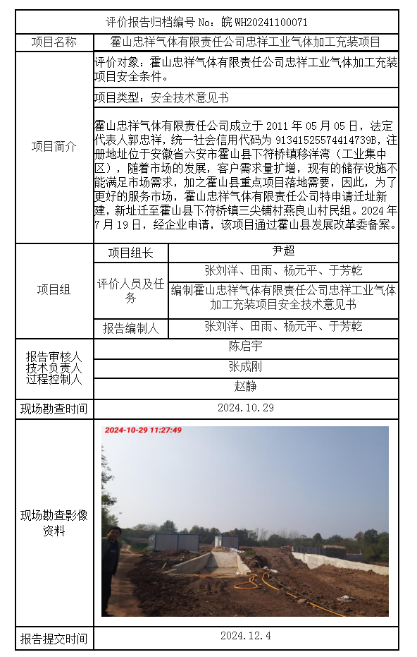 霍山忠祥氣體有限責(zé)任公司忠祥工業(yè)氣體加工充裝項(xiàng)目