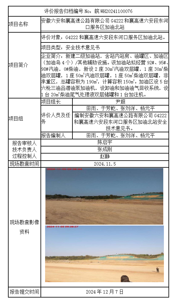 安徽六安和襄高速公路有限公司G4222和襄高速六安段東河口服務區加油北站