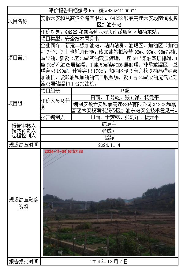 安徽六安和襄高速公路有限公司G4222和襄高速六安段南溪服務(wù)區(qū)加油東站