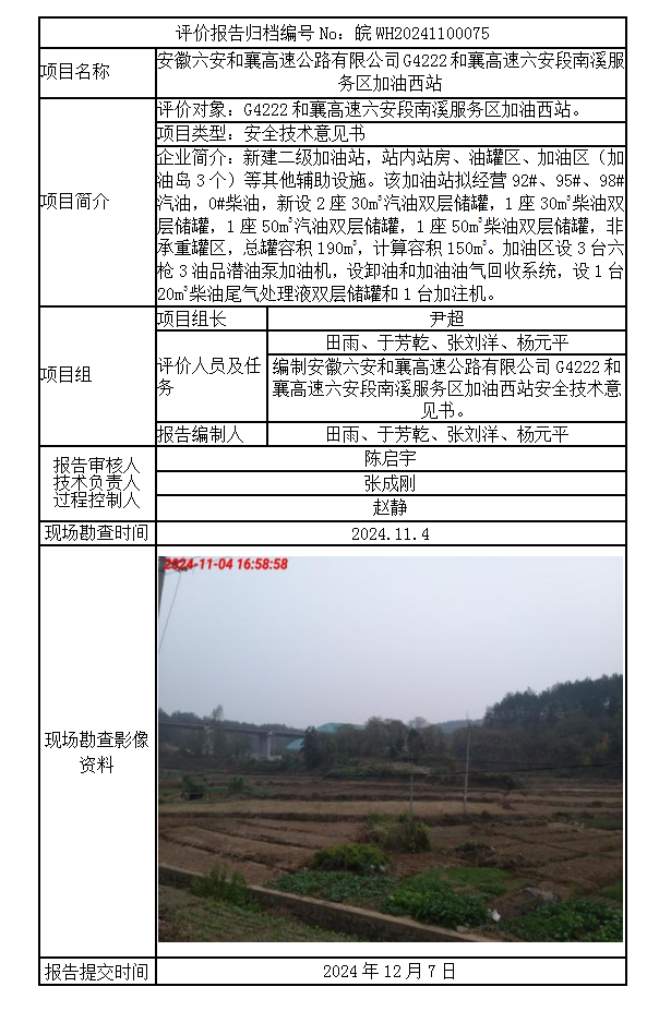 安徽六安和襄高速公路有限公司G4222和襄高速六安段南溪服務區加油西站
