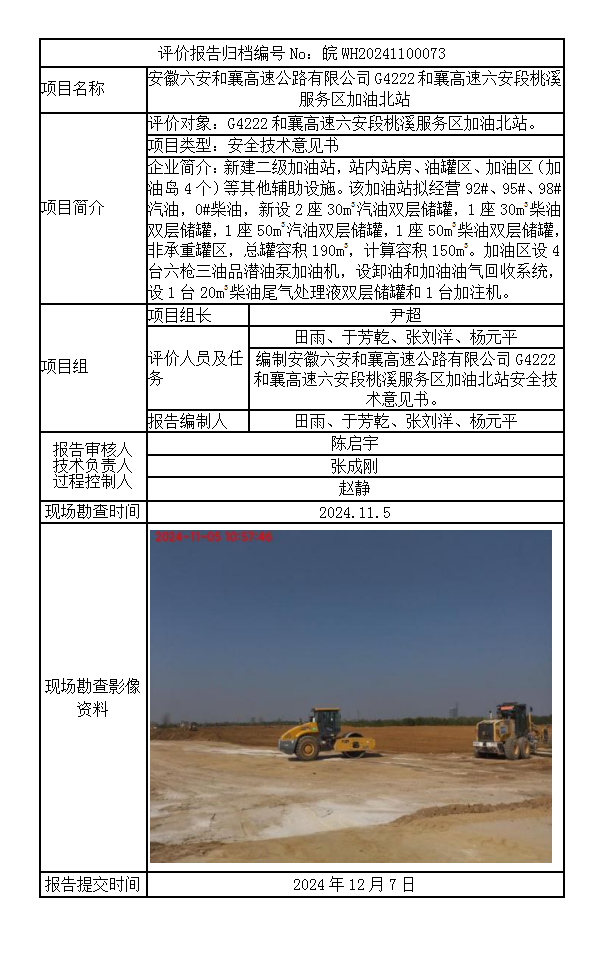 安徽六安和襄高速公路有限公司G4222和襄高速六安段桃溪服務區加油北站