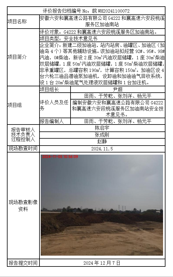 安徽六安和襄高速公路有限公司G4222和襄高速六安段桃溪服務區加油南站