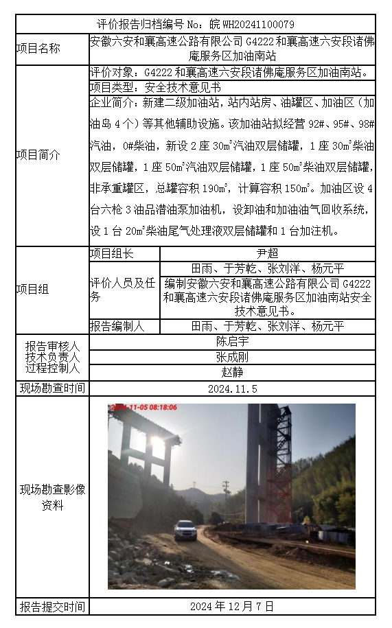 安徽六安和襄高速公路有限公司G4222和襄高速六安段諸佛庵服務區加油南站