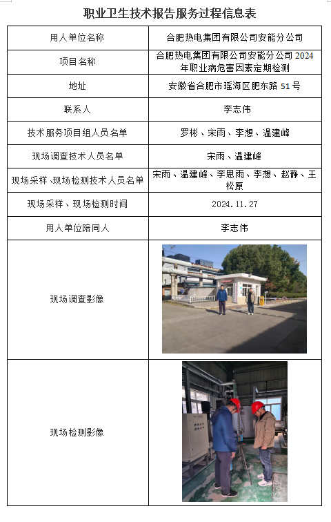 合肥熱電集團有限公司安能分公司2024年職業病危害因素定期檢測