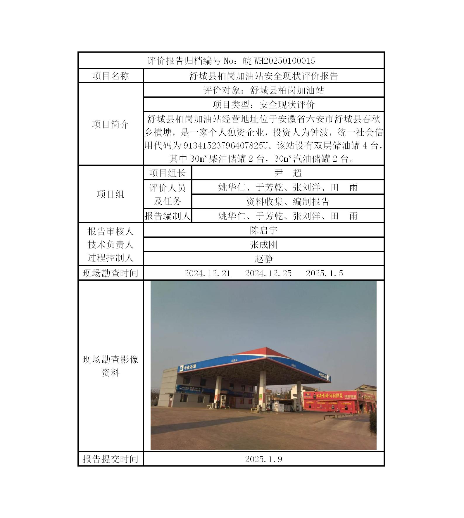 舒城縣柏崗加油站安全現(xiàn)狀評(píng)價(jià)報(bào)告