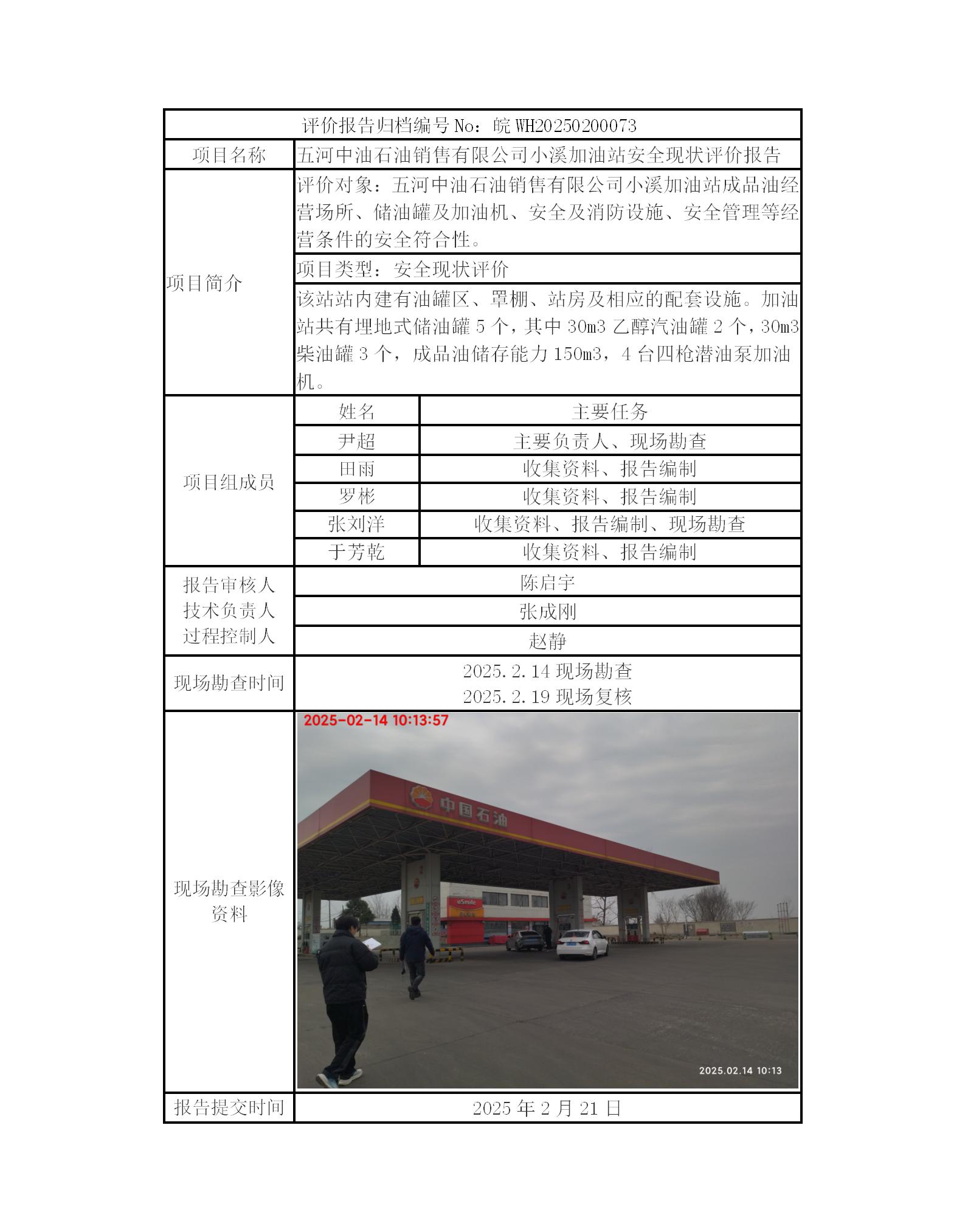 五河中油石油銷售有限公司小溪加油站安全現狀評價報告