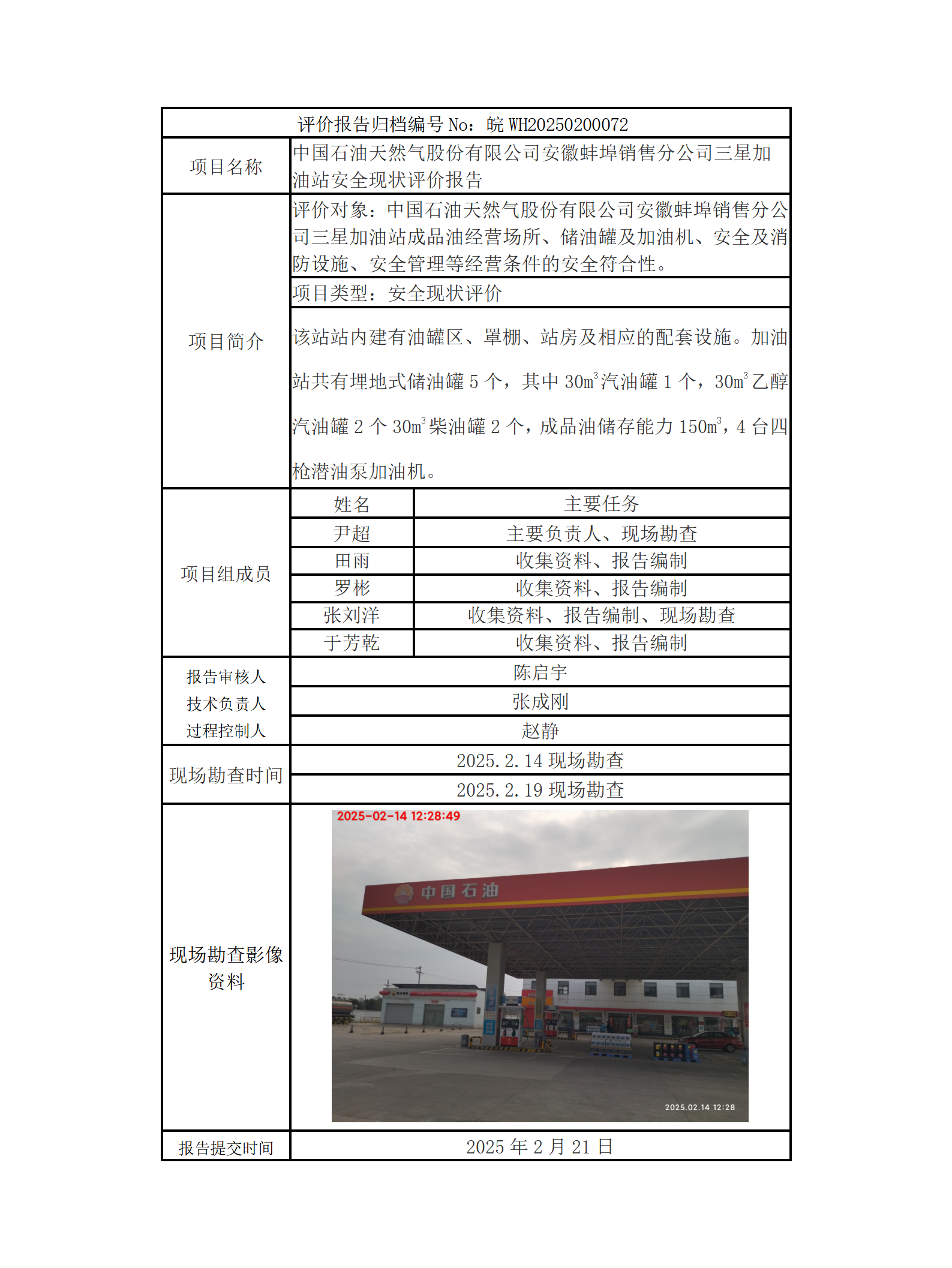 中國石油天然氣股份有限公司安徽蚌埠銷售分公司三星加油站安全現狀評價報告