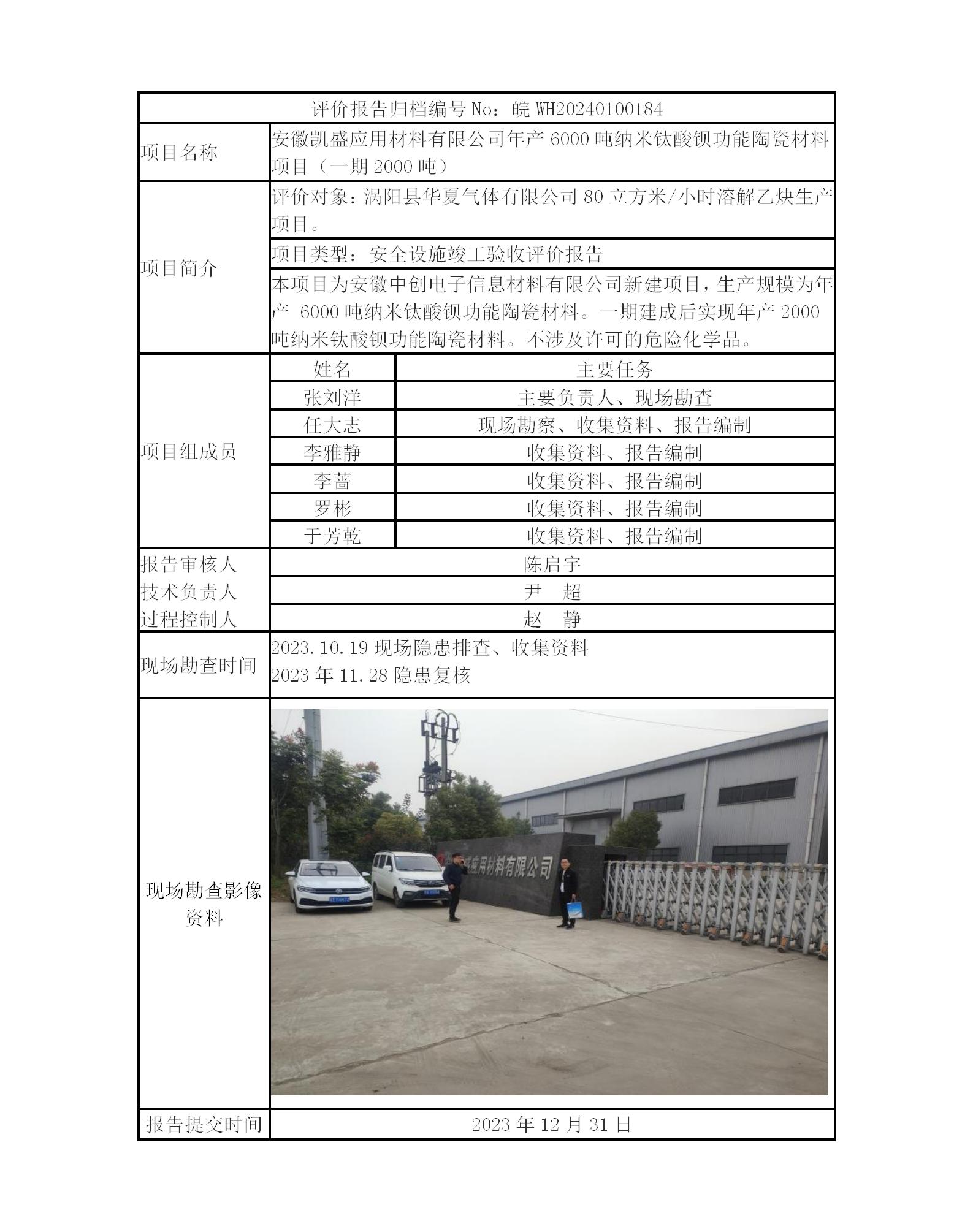 安徽凱盛應(yīng)用材料有限公司年產(chǎn)6000噸納米鈦酸鋇功能陶瓷材料項(xiàng)目(一期2000噸)