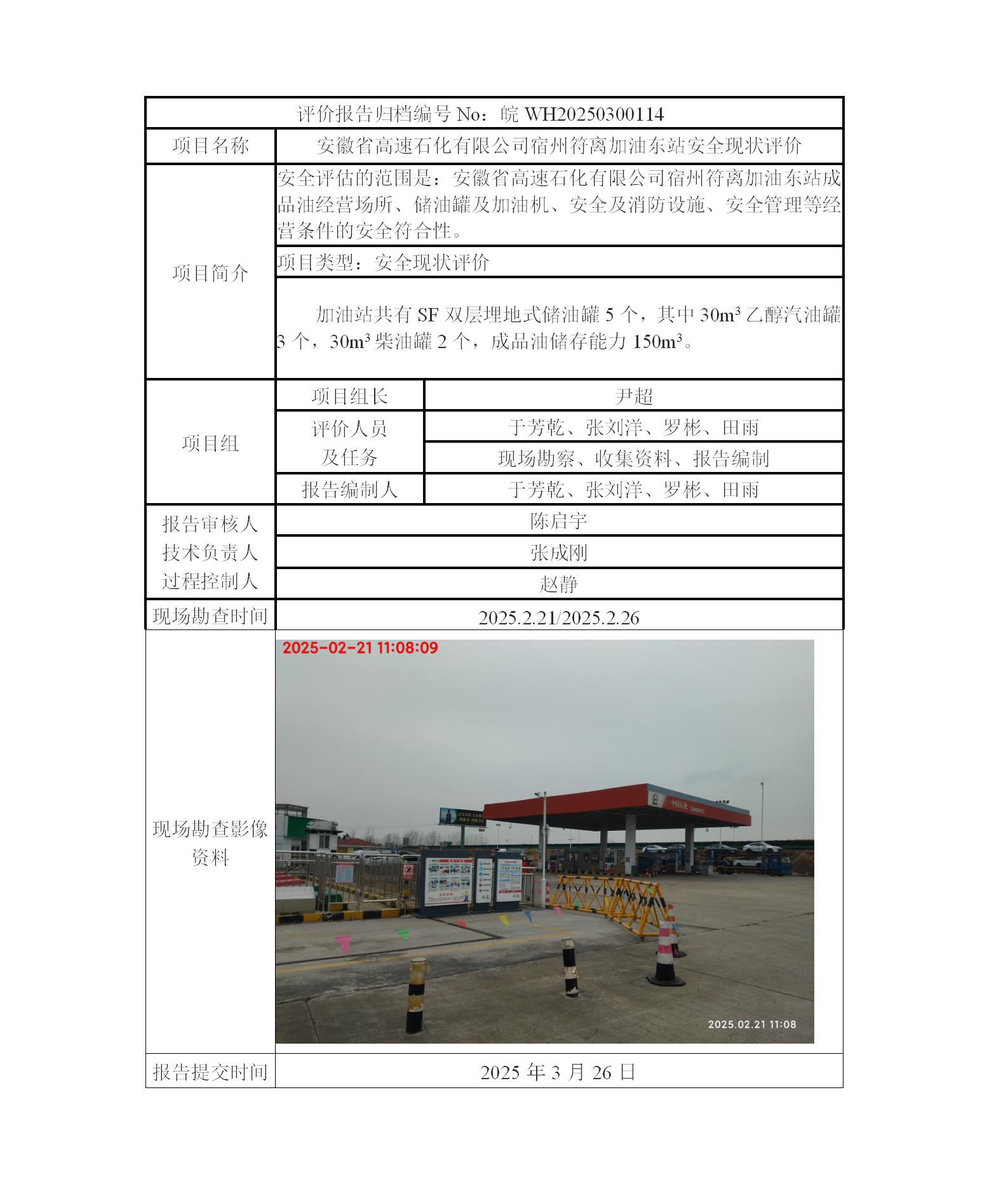 安徽省高速石化有限公司宿州符離加油東站安全現狀評價