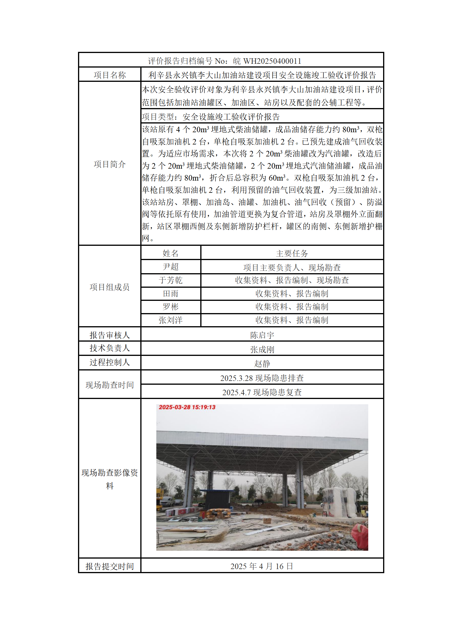 利辛縣永興鎮李大山加油站建設項目安全設施竣工驗收評價報告