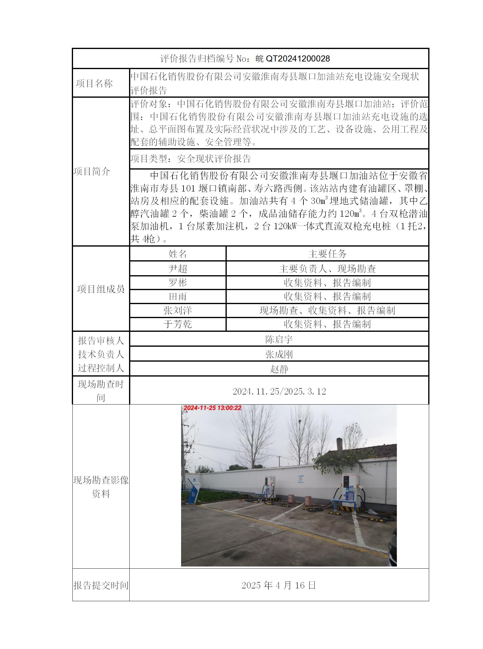 中國石化銷售股份有限公司安徽淮南壽縣堰口加油站充電設施安全現狀評價報告