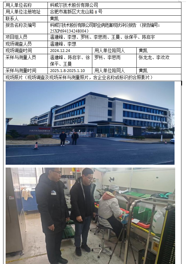 科威爾技術(shù)股份有限公司職業(yè)病危害現(xiàn)狀評(píng)價(jià)報(bào)告