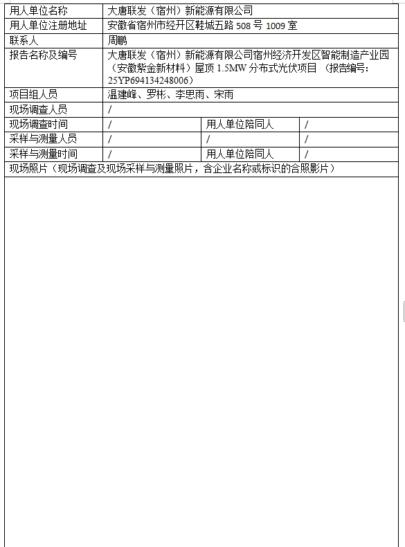 大唐聯(lián)發(fā)(宿州)新能源有限公司宿州經(jīng)濟開發(fā)區(qū)智能制造產(chǎn)業(yè)園(安徽紫金新材料)屋頂1.5MW分布式光伏項目