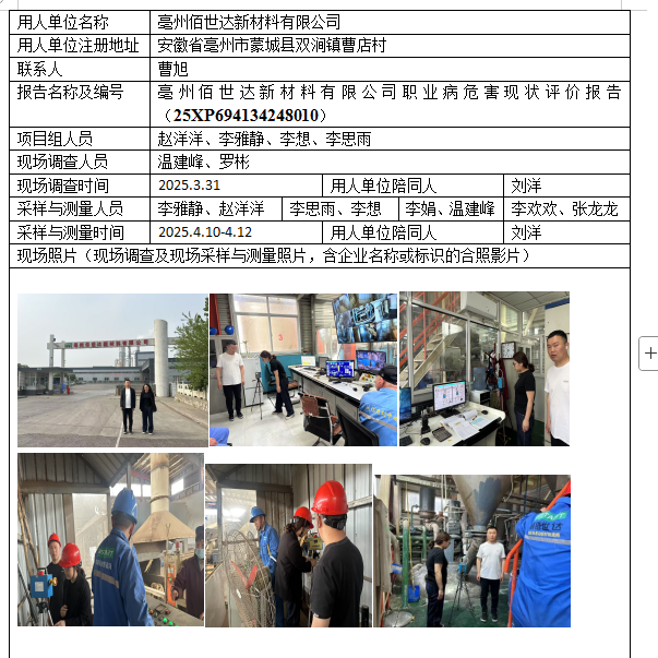 亳州佰世達(dá)新材料有限公司職業(yè)病危害現(xiàn)狀評價(jià)報(bào)告