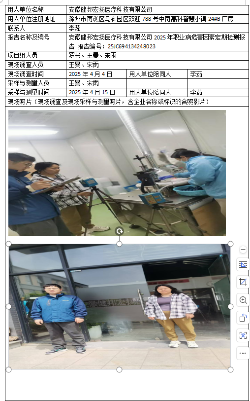 安徽健邦宏揚醫療科技有限公司2025年職業病危害因素定期檢測報告