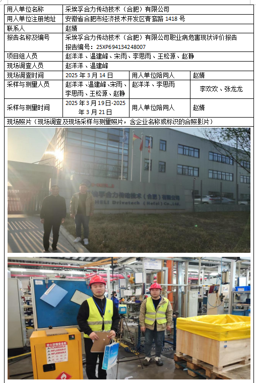 采埃孚合力傳動技術(shù)(合肥)有限公司職業(yè)病危害現(xiàn)狀評價報告