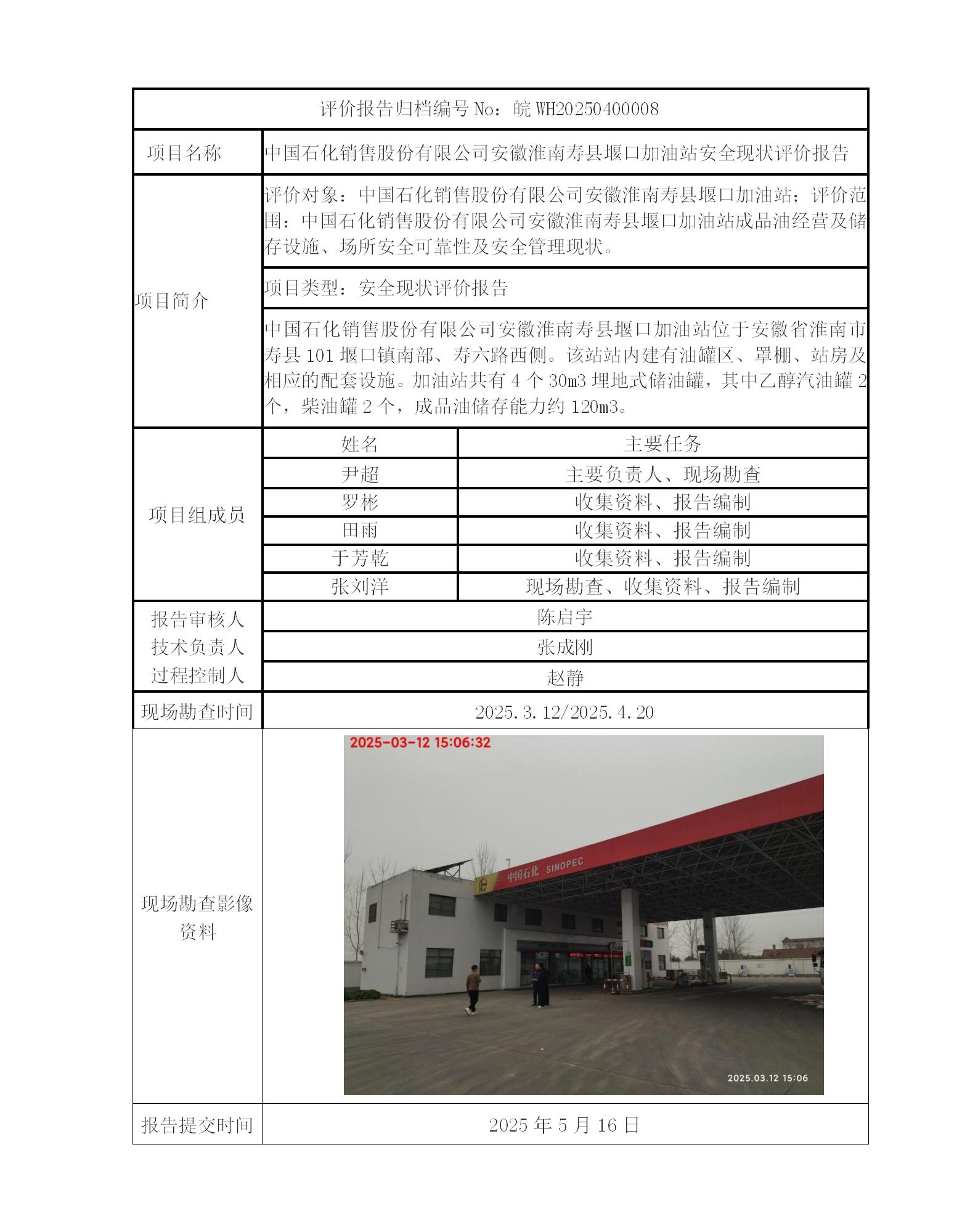 中國石化銷售股份有限公司安徽淮南壽縣堰口加油站安全現(xiàn)狀評價報告