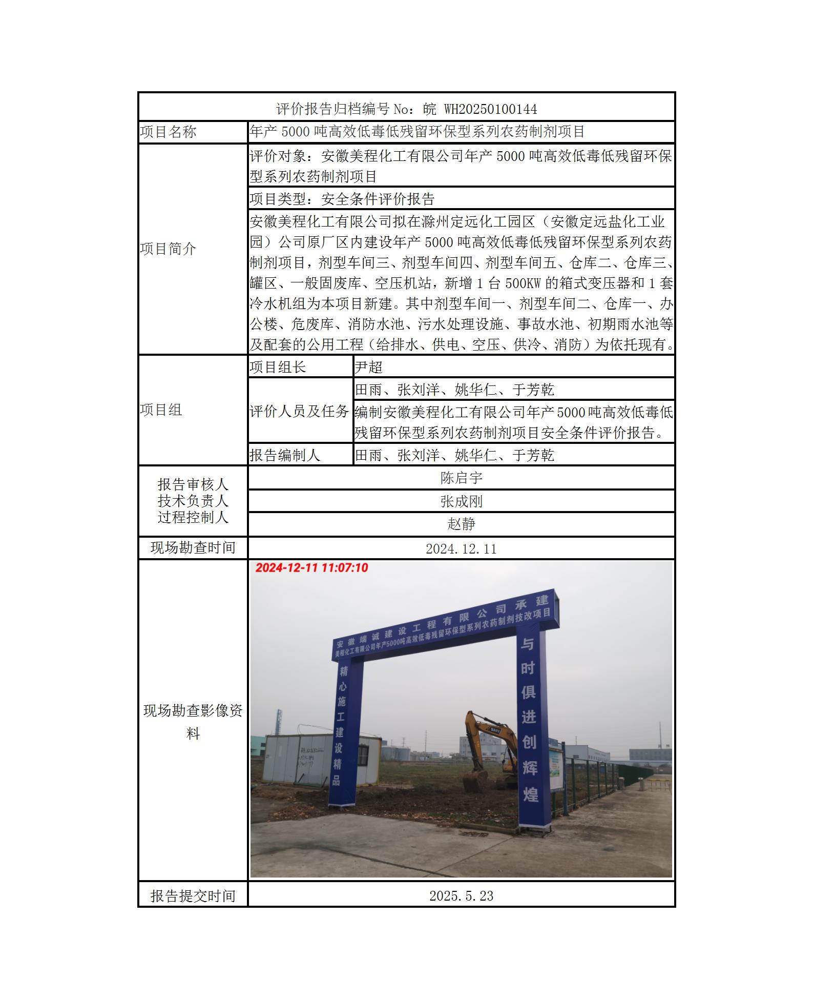 安徽美程化工有限公司年產(chǎn)5000噸高效低毒低殘留環(huán)保型系列農(nóng)藥制劑項目