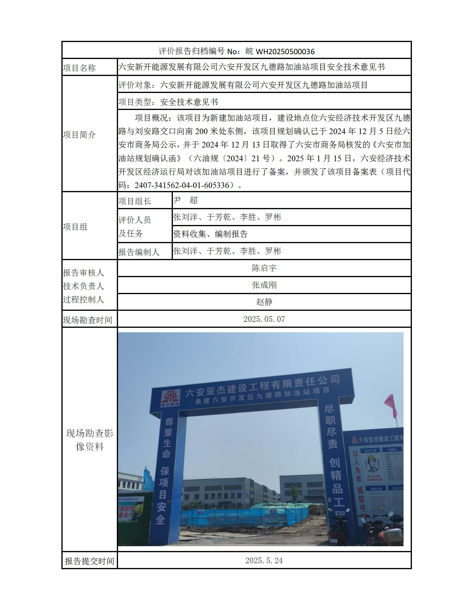 六安新開能源發展有限公司六安開發區九德路加油站項目安全技術意見書