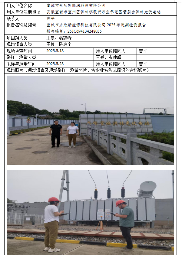 宣城市永欣新能源科技有限公司2025年定期檢測報告