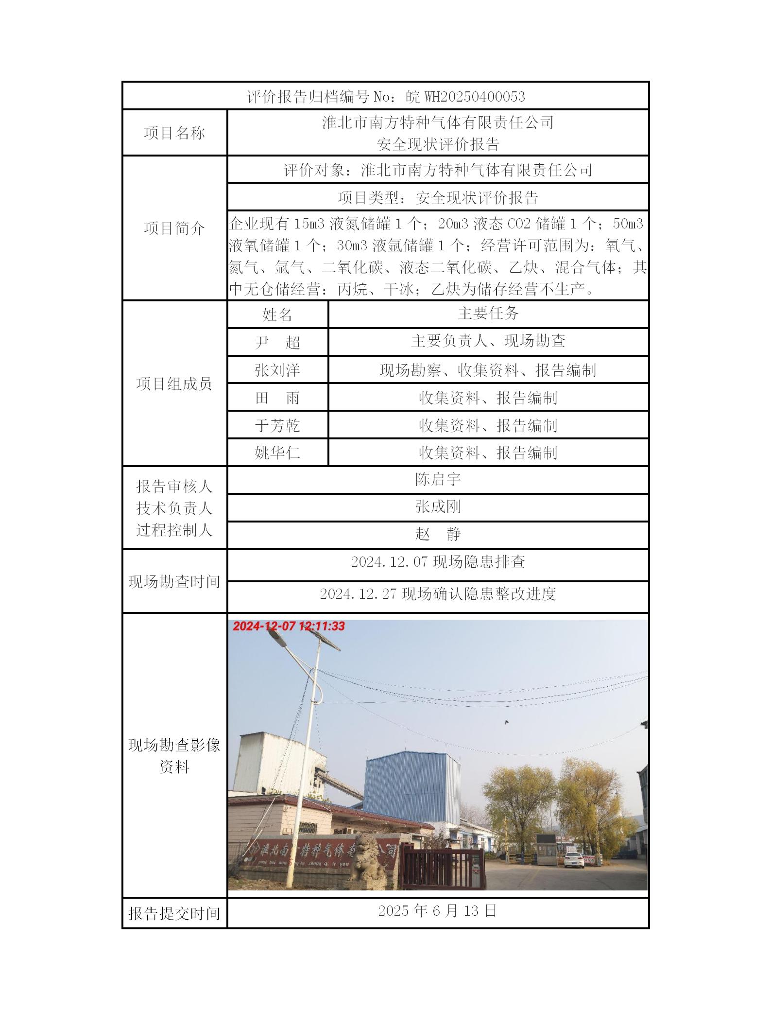 淮北市南方特種氣體有限責(zé)任公司 安全現(xiàn)狀評(píng)價(jià)報(bào)告