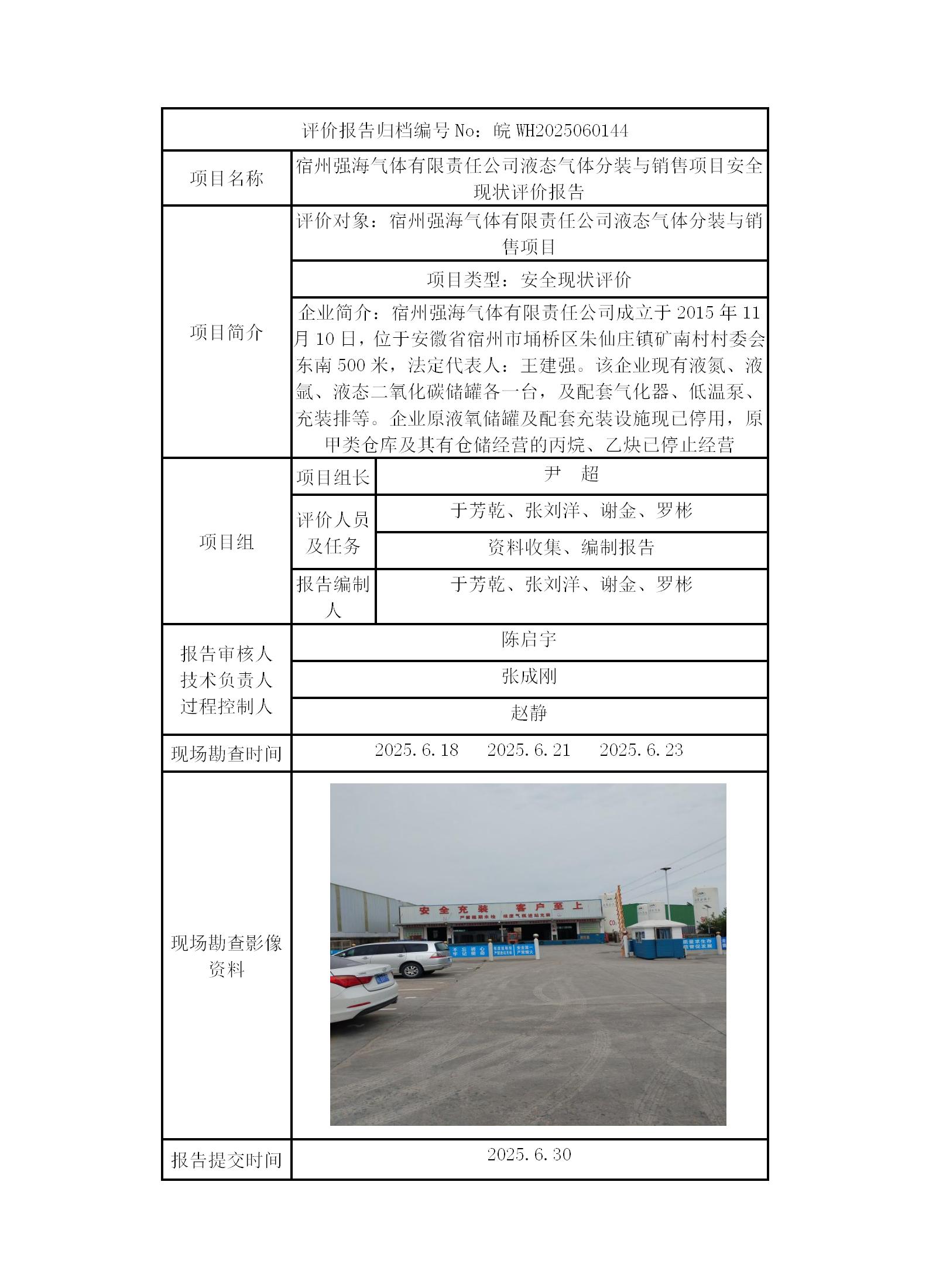 宿州強海氣體有限責任公司液態氣體分裝與銷售項目安全現狀評價報告