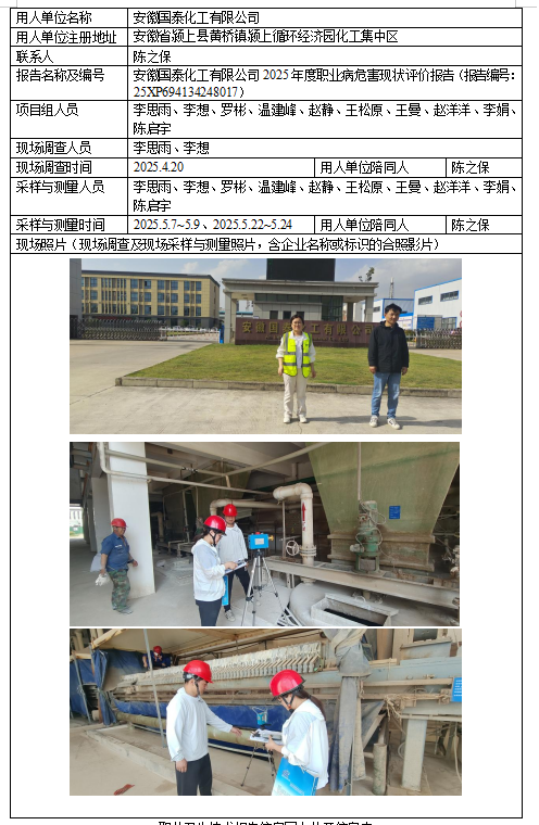 安徽國泰化工有限公司2025年度職業(yè)病危害現(xiàn)狀評價(jià)報(bào)告