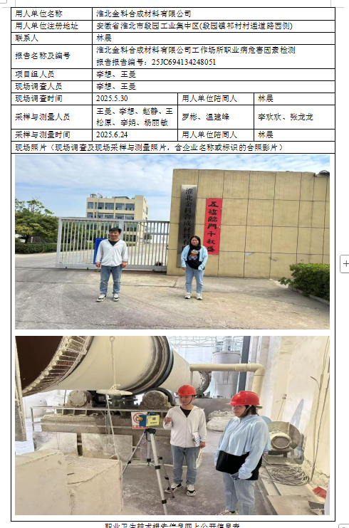 淮北金科合成材料有限公司工作場所職業病危害因素檢測