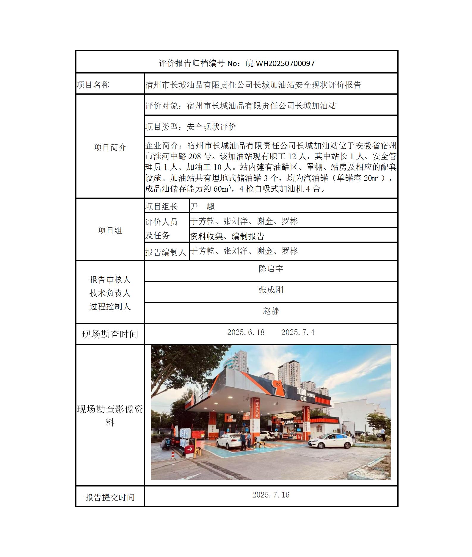 宿州市長城油品有限責任公司長城加油站安全現狀評價報告