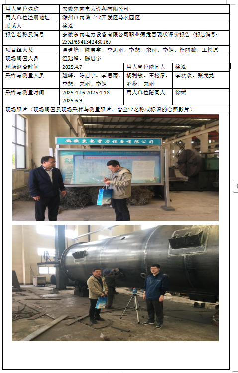 安徽東南電力設(shè)備有限公司職業(yè)病危害現(xiàn)狀評(píng)價(jià)報(bào)告