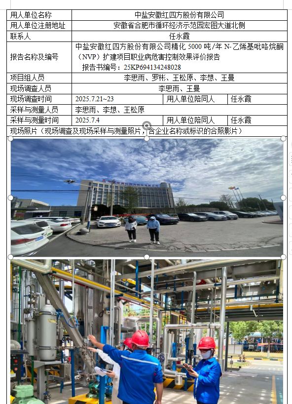 中鹽安徽紅四方股份有限公司精化5000噸/年N-乙烯基吡咯烷酮(NVP)擴(kuò)建項(xiàng)目