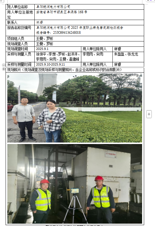 阜陽皖潤電力有限公司2025年度職業病危害定期檢測報告