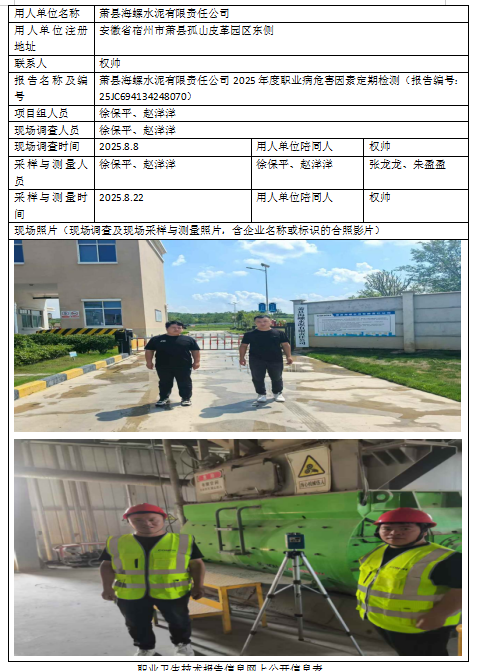 蕭縣海螺水泥有限責任公司2025年度職業病危害因素定期檢測(報告編號:25JC694134248070)